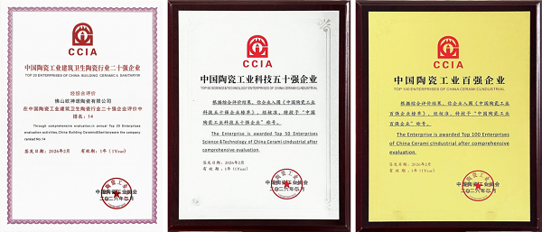 科技创新,闪耀前行:欧神诺斩获六项行业陶瓷重磅荣誉
