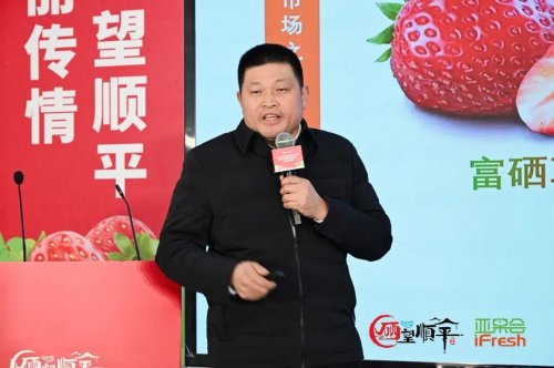 顺平县科学技术协会主席王欣欣对顺平富硒产业进行了整体推介,全面展示了顺平富硒农业,特别是富硒草莓的资源优势、发展成果与规划蓝图。